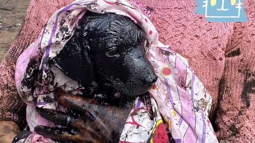 В Краснодарском крае щенка спасли из мазутной ямы