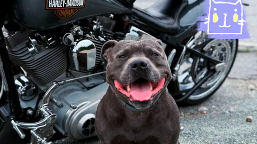 Знакомьтесь, это Харлей, и он просто обожает кататься со своим хозяином на мотоцикле!
