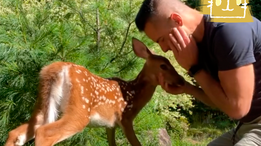 Олененок Фея навещает мужчину, который когда-то помог ему выжить