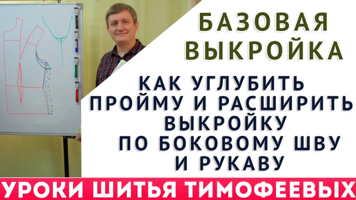 БАЗОВАЯ ВЫКРОЙКА. КАК УГЛУБИТЬ ПРОЙМУ И РАСШИРИТЬ ВЫКРОЙКУ ПО БОКОВОМУ ШВУ И РУКАВУ. Тимофеев шитьё