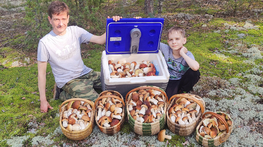 Сорвали ДЖЕК-ПОТ по белым еловым грибам. 120 литров на троих.