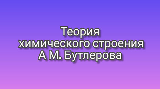 Теория химического строения органических веществ А М.Бутлерова