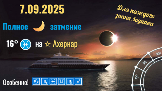 7.09.2025 Полное ☽ затмение в 16°♓на ☆ звезде Ахернар “Меч Архангела” для каждого знака Зодиака