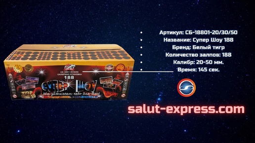 Салют СБ-18801 «Супер Шоу 188» (188 выстрелов, 20–50 мм, 145 сек.) — Белый Тигр