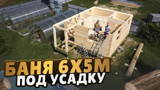 НЕКЛАССИЧЕСКАЯ баня 6х5м ПОД УСАДКУ. Планировка с большой парной. Видео со стройки.
