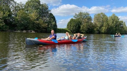 Трехчасовая прогулка на трехместных байдарках по Москве-реке в Красногорском районе.