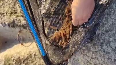 Ловля креветок сачком . Побережье Азовского моря. Еще много всякой живности .