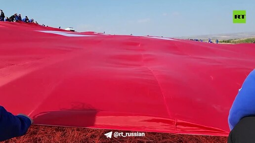 Огромное знамя Победы развернули на мемориале «Саур-Могила».