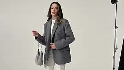 Женский пиджак серого цвета выполнен в элегантном классическом стиле.