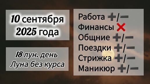 Лунный день 10 сентября 2025 года