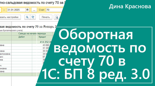 Оборотная ведомость по счету 70 в 1С Бухгалтерия 8