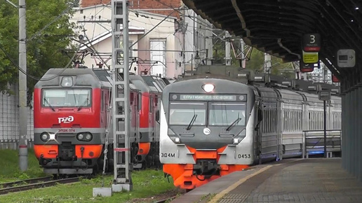 Несколько минут на платформе Новогиреево. Проезжающий экспресс и сплотка электровозов.