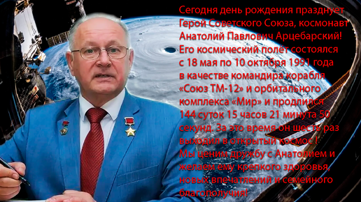 Поздравляем с днём рождения лётчика-космонавта, Героя Советского Союза Анатолия Павловича Арцебарского