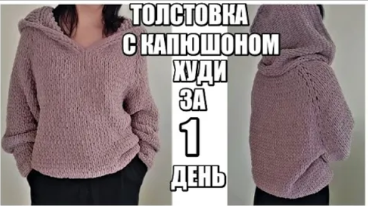 ЗА 1 ДЕНЬ СПРАВИТСЯ ШКОЛЬНИК.Свитер с капюшоном без крючка и спиц.Худи.Толстовка из Alize Puffy Fine