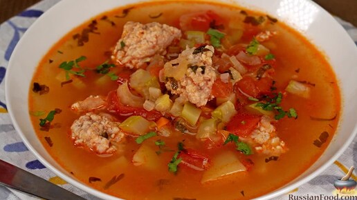 Просто и быстро. Суп с фрикадельками и овощами