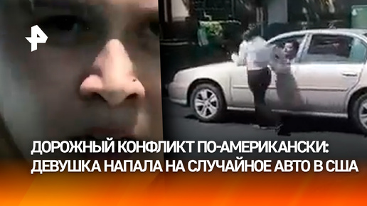 Сумасшедшая дама устроила истерику на дороге и разбила лобовое случайного авто в США