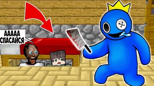 СПРЯТАЛИСЬ ПОД КРОВАТЬЮ С БАБКОЙ ГРЕННИ ОТ СИНИЙ РАДУЖНЫЙ ДРУГ В МАЙНКРАФТ Rainbow Friends MINECRAFT