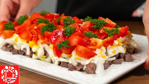 😋 Такой салат станет вашим любимым! Печень + помидоры = любовь ❤️