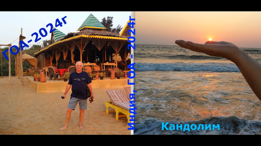 ГОА-24г. Отель "Santana Beach Resort". Решили вечером прогуляться по пляжу. На пляже в Кандолиме много Шеков (кафе). Сильный ветер, шторм.