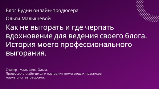 Как не выгорать и где черпать вдохновение для ведения своего блога. История моего профессионального выгорания.