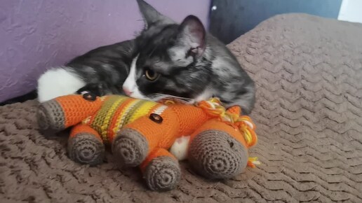 Сема любит играть мягкими игрушками. 🧸 Наши удивительные котэ) 🐱