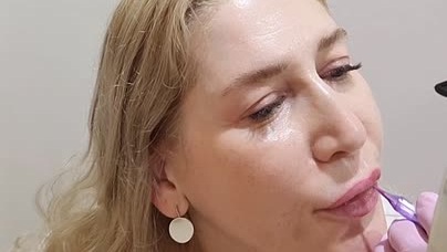 Процесс процедуры перманентного макияжа губ, супер натуральный и акварельный вариант.