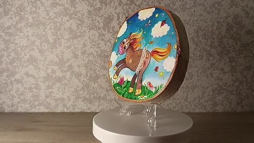 Картина на деревянном спиле. Лошадка и осень :)