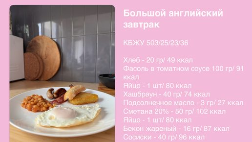 Большой английский завтрак на 500 калорий, идеально для выходного дня!