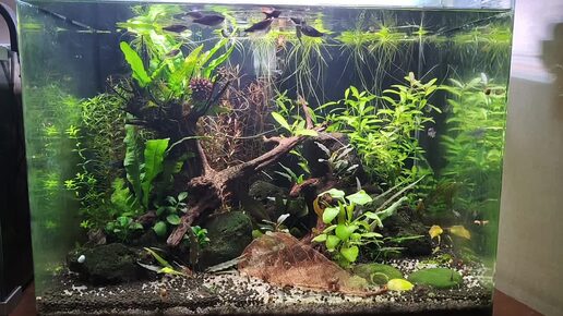Утреннее кормление рыбок в аквариуме. Минутное видео.