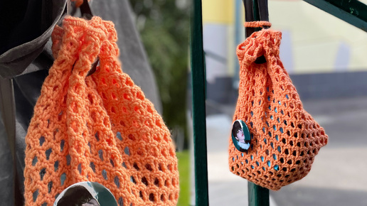 Мини-рюкзачок крючком из пряжи "Клубки в корзинке"