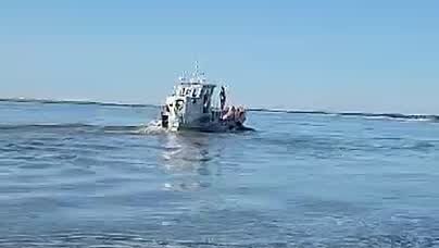 Рыбаки разгрузили моторный бот Аллайха со свежим уловом. Рыба поехала в ледник для заморозки. Бот пошёл на другие рыболовецкие участки. Видео Сергея Владимировича Бережнова R.I.P