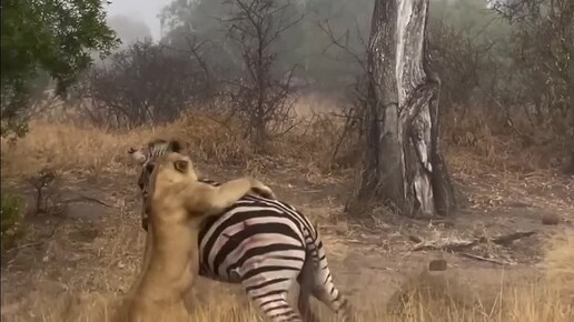 Не на ту напали: зебра отбилась от двух вцепившихся в нее львиц – удивительное видео