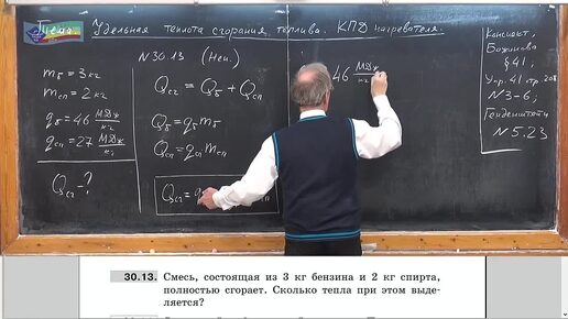 Задача на определение выделившегося тепла при сгорании смеси бензина и спирта