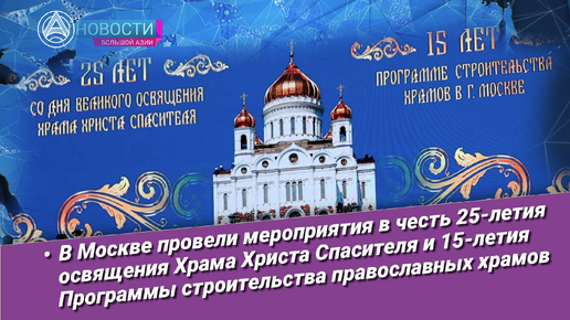 Новости Большой Азии (выпуск 1071): 25-летие освящения воссозданного Храма Христа Спасителя, концерт