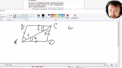 Признаки параллелограмма, решение типовой задачи 8 класс.