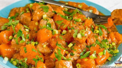 Яркое осеннее блюдо. Свинина, тушенная с тыквой