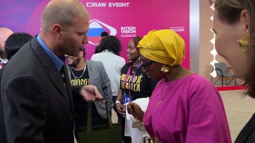 Колумбийская участница конкурса «Интервидение» Нидия Гонгора получила памятный подарок от Универмага НЦ «Россия»