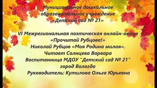 Николай Рубцов «Моя родина милая».
