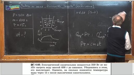 Задача на определение снижения уровня температуры воды после выключения кипятильника через заданное время