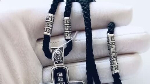 Крест на гайтане «Распятие, молитвы «Господи милостивый спаси и сохрани мя», граб, серебро 925 проба (арт. КРД-1-Ч)