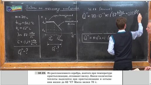 Задача на определение количества теплоты выделившейся при кристаллизации и остывании вилки, отлитой из серебра