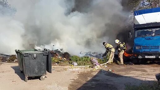 21.08.2025Г ул Демидовская города Волгограда. Горит контейнерная площадка для сбора ТКО
