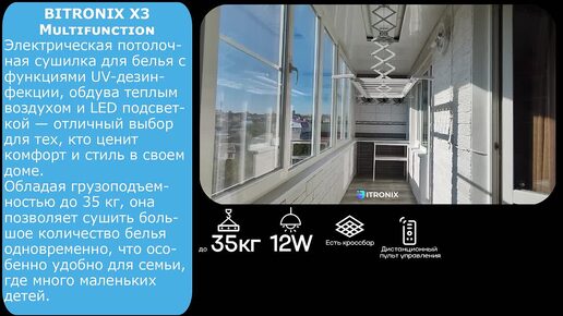 Потолочная умная сушилка BITRONIX для балкона, лоджии и не только — будь в тренде вместе с BITRONIX.