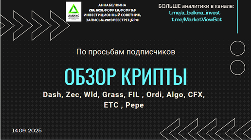 Обзор крипты по просьбам подписчиков - #Dash #Zec #Wld #Grass #FIL #Ordi #Algo #CFX #ETC #Pepe