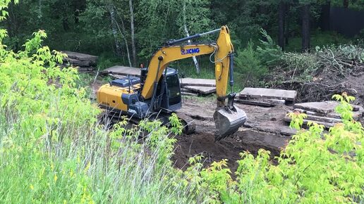 Экскаватор XCMG делает дорогу