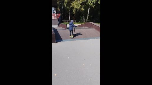 Мы учились кататься на самокате на горках