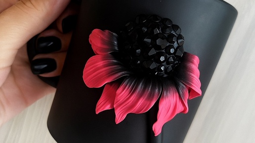 Кружка с декором из полимерной глины «Цветок с Венеры»🩷🖤