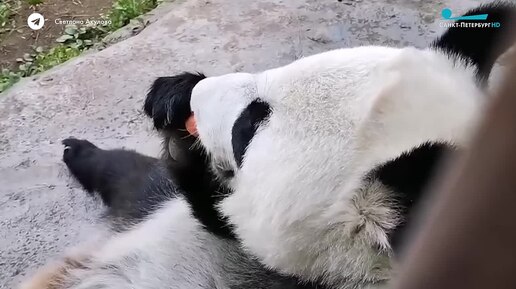 Панда Катюша хрустит сладкой морковкой