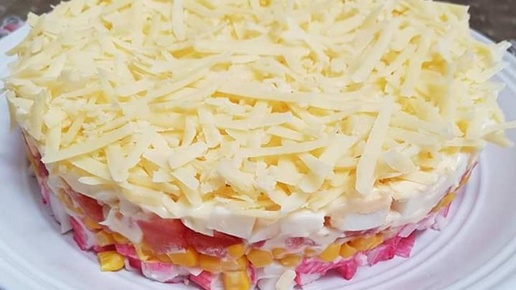 Салат с крабовыми палочками. Быстро и вкусно.