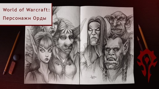 Рисую персонажей World of Warcraft. Разворот скетчбука с Ордой